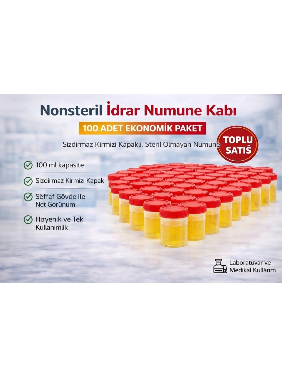 nonsteril idrar numune kabı, idrar kabı 100 ml, numune kabı medikal, sızdırmaz numune kabı, idrar tahlil kabı, laboratuvar numune kabı, plastik numune kabı, medikal sarf malzeme, idrar örnek kabı, sağlık ürünleri, hastane malzemeleri, toplu numune kabı, ekonomik numune kabı, steril olmayan numune kabı